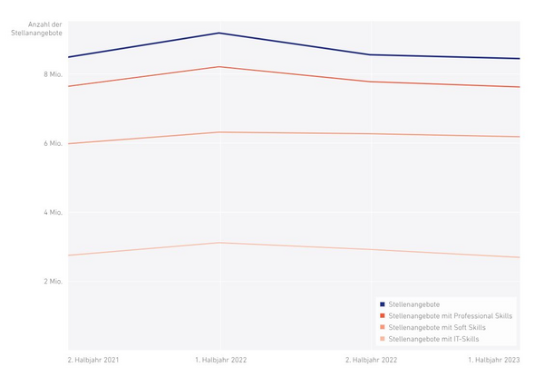 Trotz eines leichten Rückgangs in den letzten zwei Jahren bei Stellenangeboten in der Informatik und IKT-Branche sowie der Nachfrage nach IT-Skills, legen deutsche Unternehmen verstärkt Wert darauf, dass Mitarbeiter neben fachspezifischen Kompetenzen ein Profil mit ausgeprägten Soft Skills vorweisen.