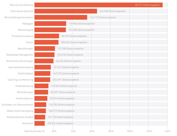 Dies spiegelt die sich rasch ändernde Arbeitswelt wider. Die umfassende Analyse ermöglicht es Unternehmen und ihren Beschäftigten, Weiterbildungsaktivitäten gezielt danach auszurichten. Agenturen für Arbeit und Jobcenter erhalten Anhaltspunkte für Empfehlungen, die sie Arbeitsuchenden geben, um ihre beruflichen Fähigkeiten gezielt zu entwickeln und sich auf die Anforderungen von morgen vorzubereiten. Wir haben die Kompetenzentwicklung auf dem Arbeitsmarkt der Zukunft für Sie im Blick.